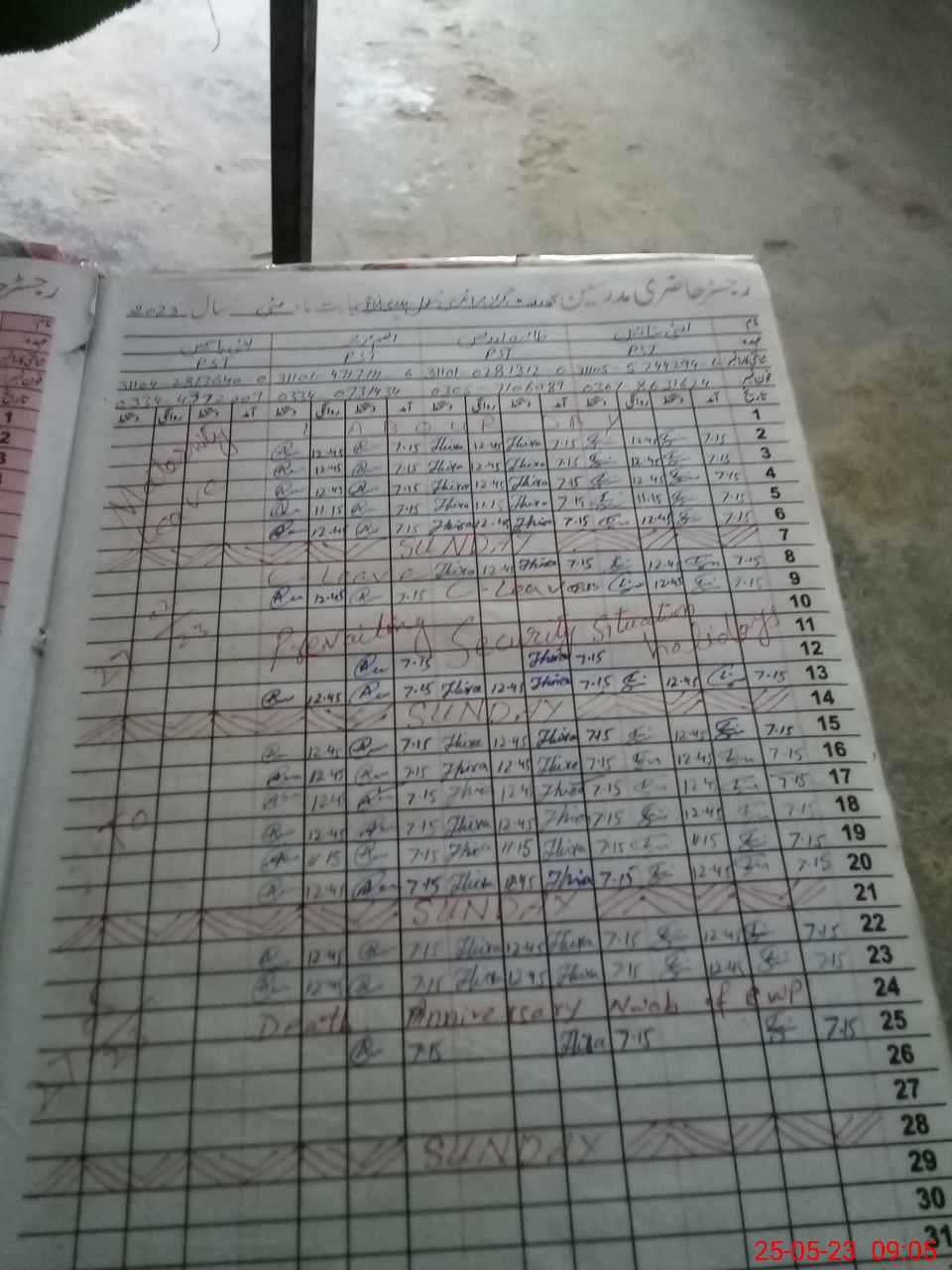 | CNIC | Full Name | Designation | R/C | Absence during last cal. month |
