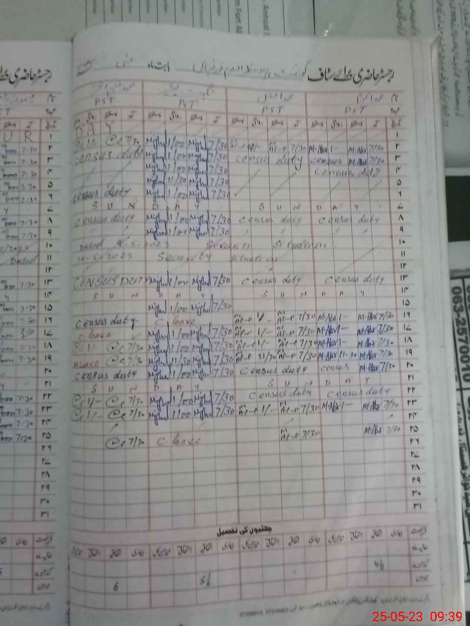 | CNIC | Full Name | Designation | R/C | Absence During Last Calender Month |