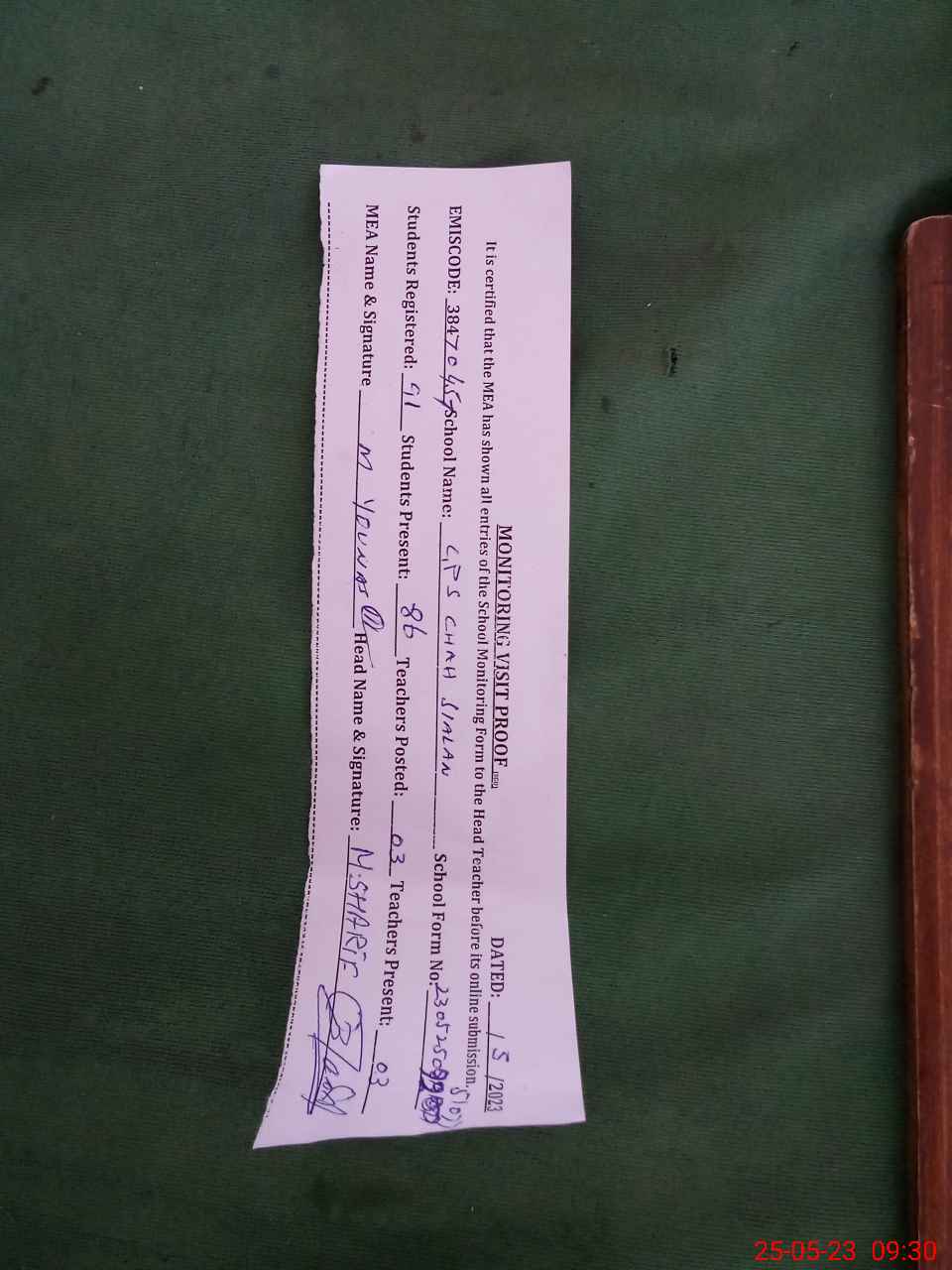 | EMIS Code: 38470457 | Name of School: GPS CHAH SIALAN | |||