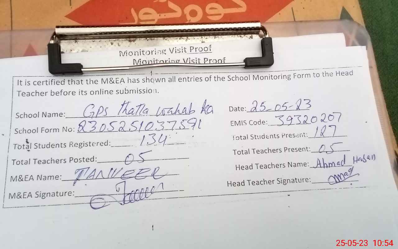 | Attendance Register | Head Teacher | MEA with School | Visit Proof |