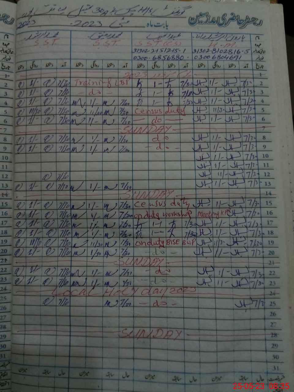 | 31**** | Ab**** Ha**** | Regular | 0 | 30 | 0 | 0 | 0 | 0 | 0 | 0 | 0 | Exam Duty | |