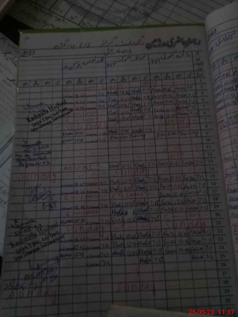 | CNIC | Full Name | Designation | R/C | Absence During Last Calender Month |
