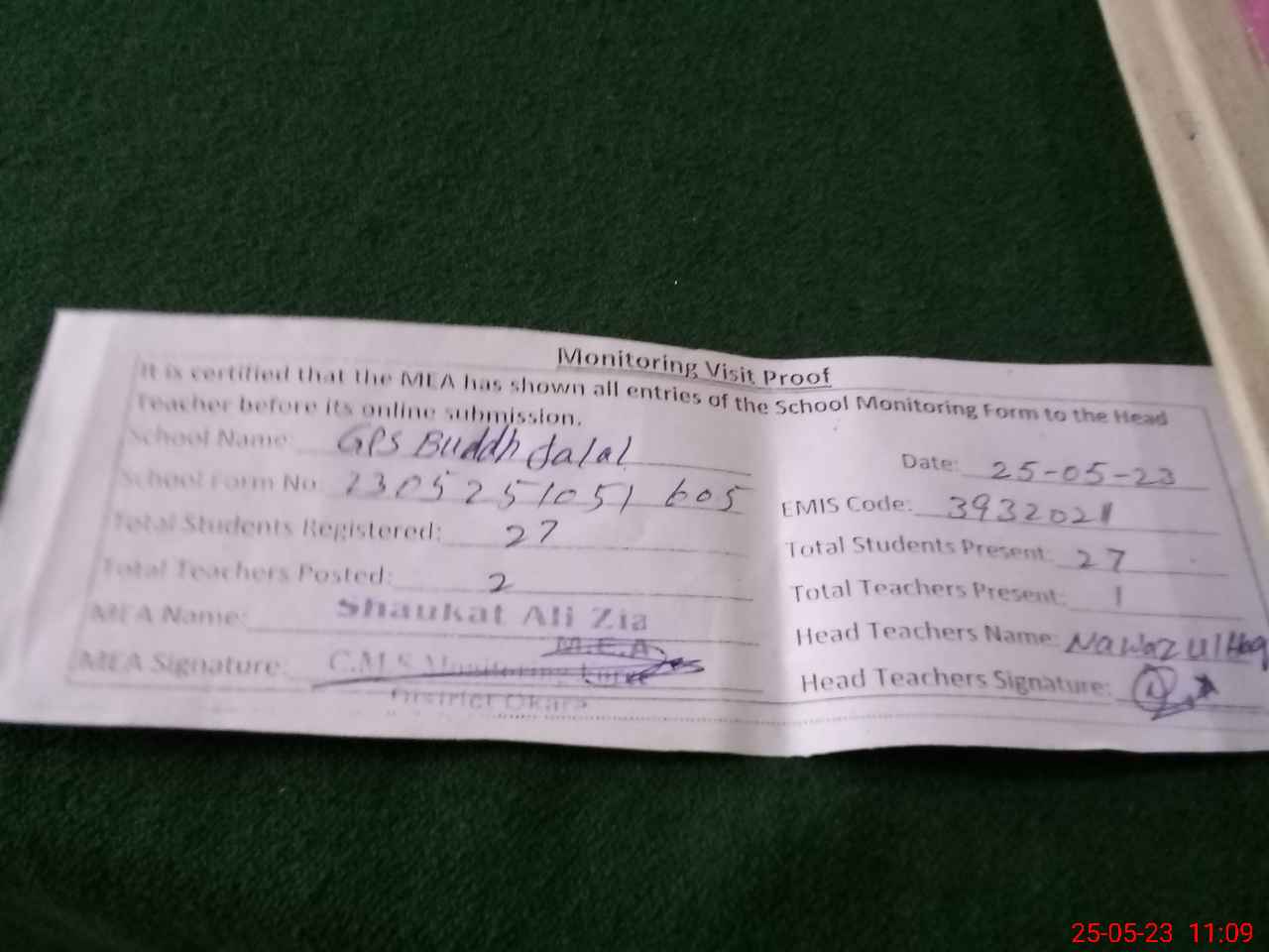 | EMIS Code: 39320211 | Name of School: GPS BUDDH JALAL | |||