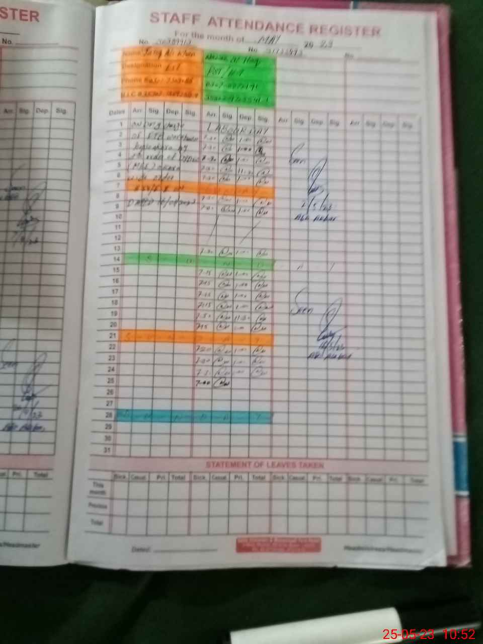 | Name: Ta**** Al**** Designation: (School Headmaster's/Headmistress's) PTC/JV Phone/Cell Number: 03**** |