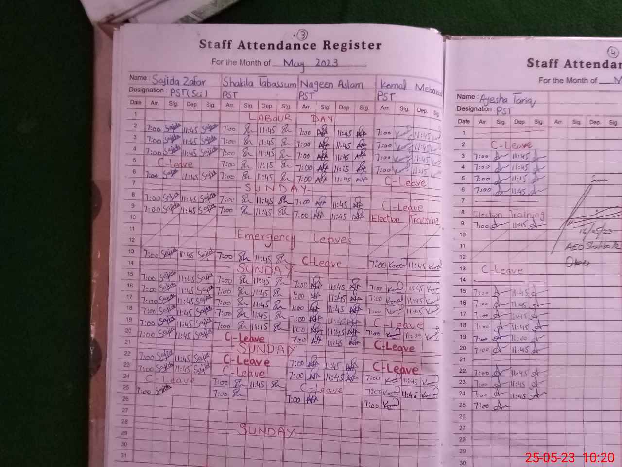 | Leave | Duty | Absent | Maternity | Medical | Ex- Pak |