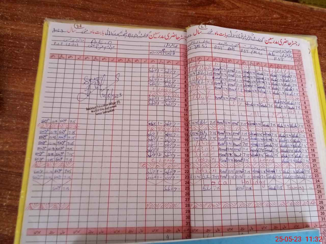 | CNIC | Full Name | Designation | R/C | Absence During Last Calender Month |
