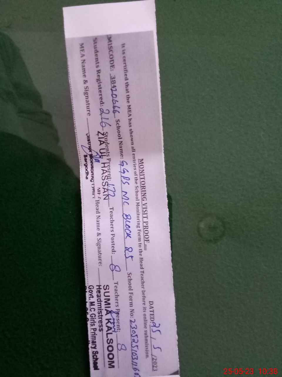 | EMIS Code: 38420666 | Name of School: GGPS MC BLOCK NO.25 SARGODHA | |||