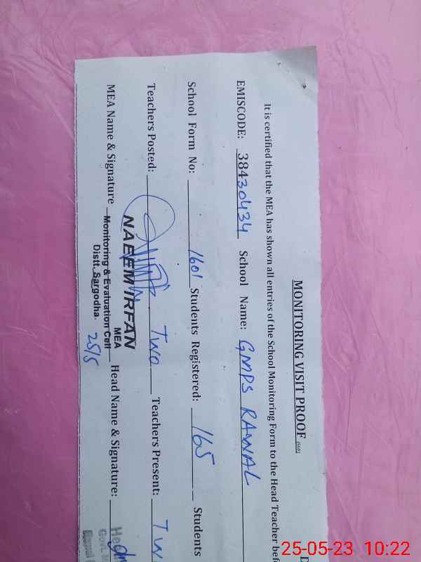 | Certified that this School was Inspected by the Undersigned MEA/DMO Today and the Information Stated Above is as Per Record. | |||||