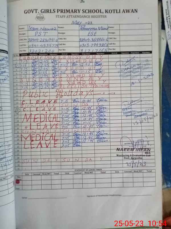 | Name: TE**** MU**** Designation: (School Headmaster's/Headmistress's) PST Phone/Cell Number: 03**** |