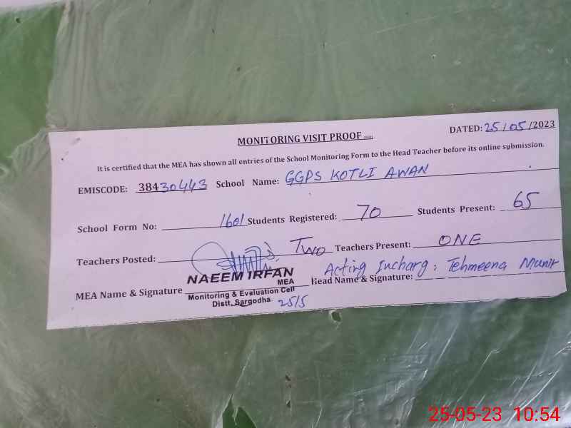 | EMIS Code: 38430443 | Name of School: GGPS KOTLI AWAN | |||