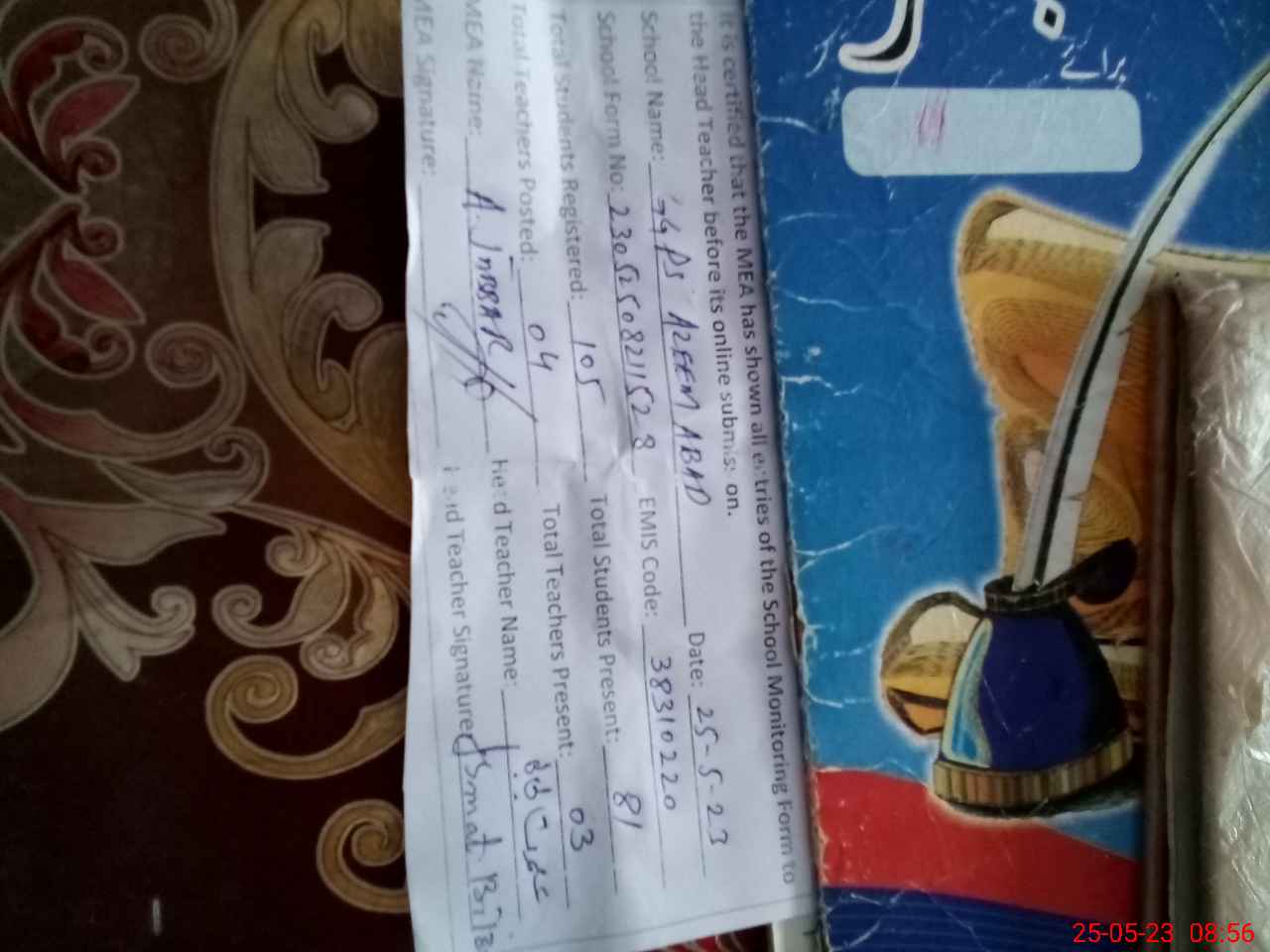 | Attendance Register | Head Teacher | MEA with School | Visit Proof |