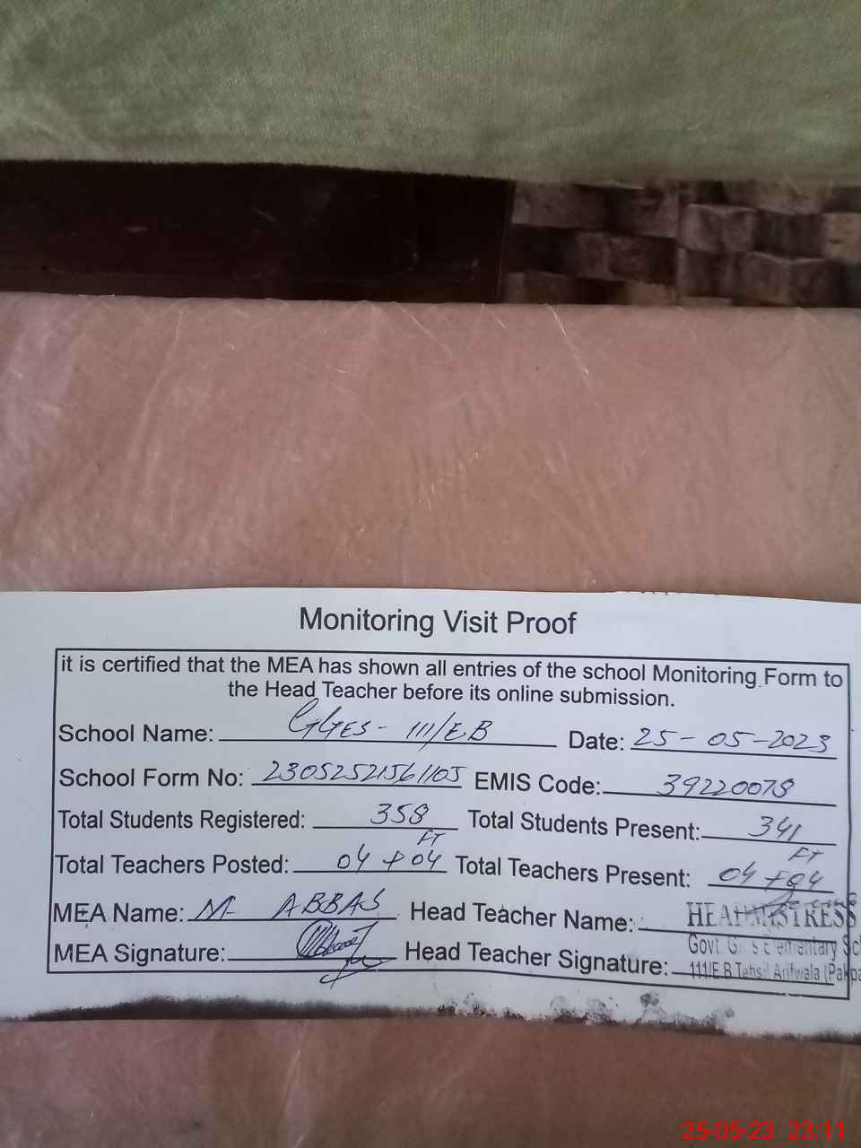 | EMIS Code: 39220078 | Name of School: GGES 111 EB P.O.ARIFWALA | |||