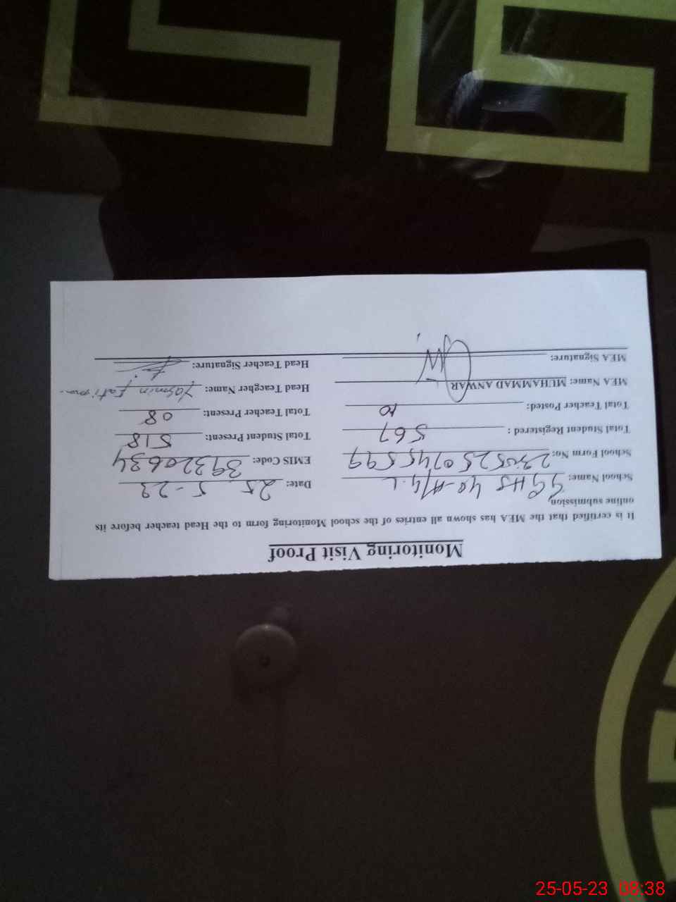 | Name: YA**** FA**** Designation: (School Headmaster's/Headmistress's) SST GRNERAL Phone/Cell Number: 03**** |