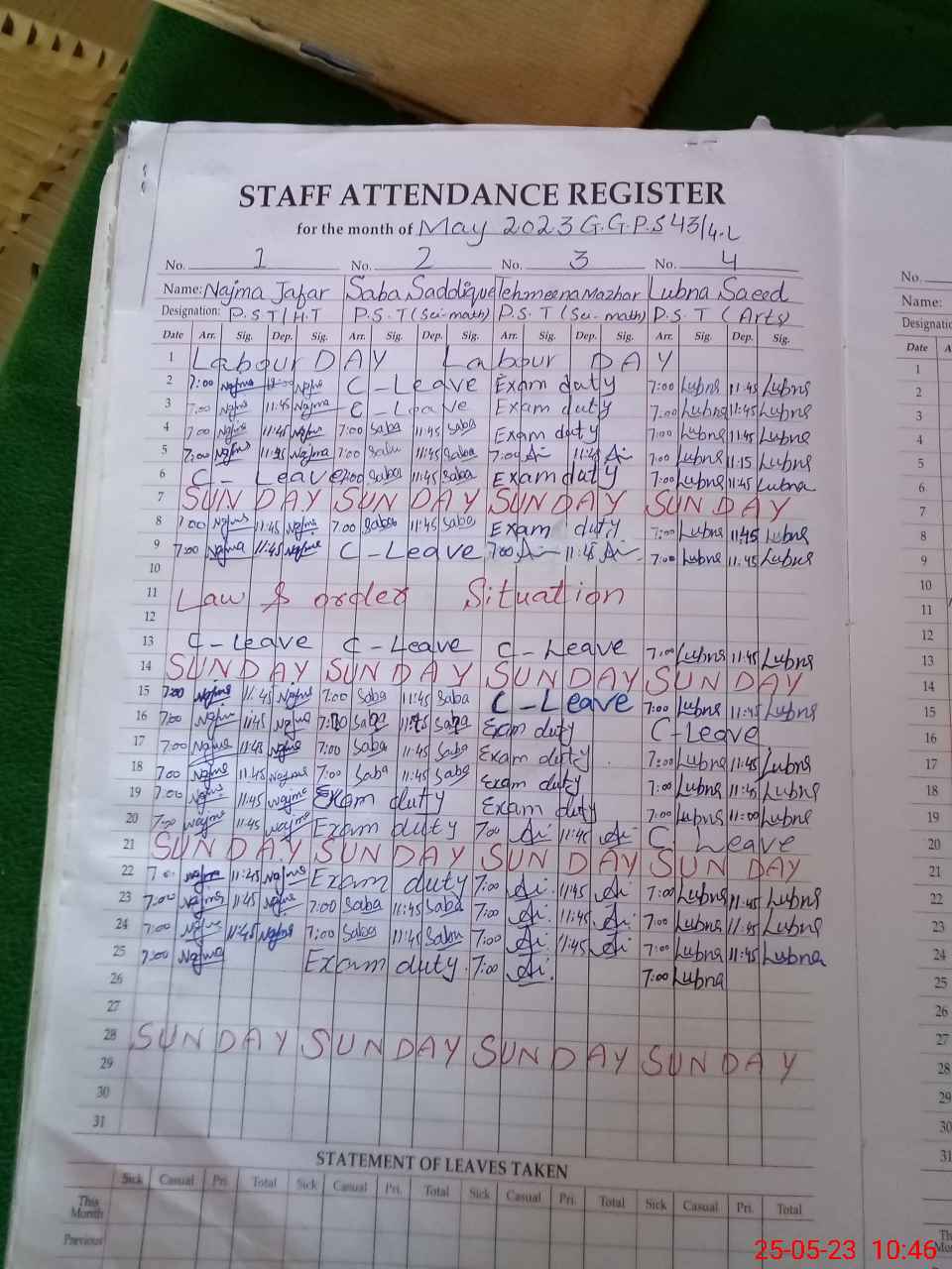 | 35**** | Sa**** Sa**** | ESE | Contract | 0 | 0 | 0 | 0 | 0 | 0 | 0 | 0 | 0 | Exam Duty |