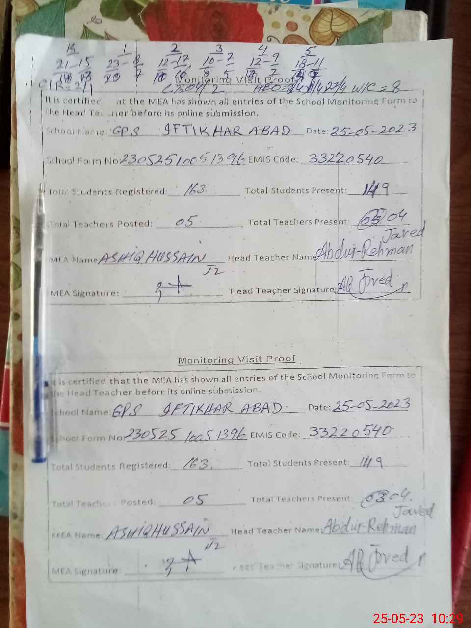 | EMIS Code: 33220540 | Name of School: GPS IFTIKHAR ABAD | |||