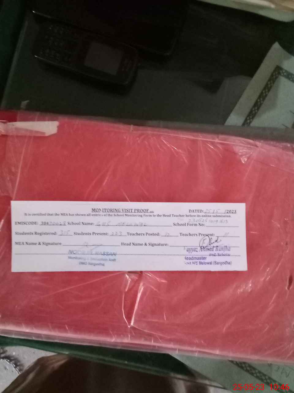 | Certified that this School was Inspected by the Undersigned MEA/DMO Today and the Information Stated Above is as Per Record. | |||||