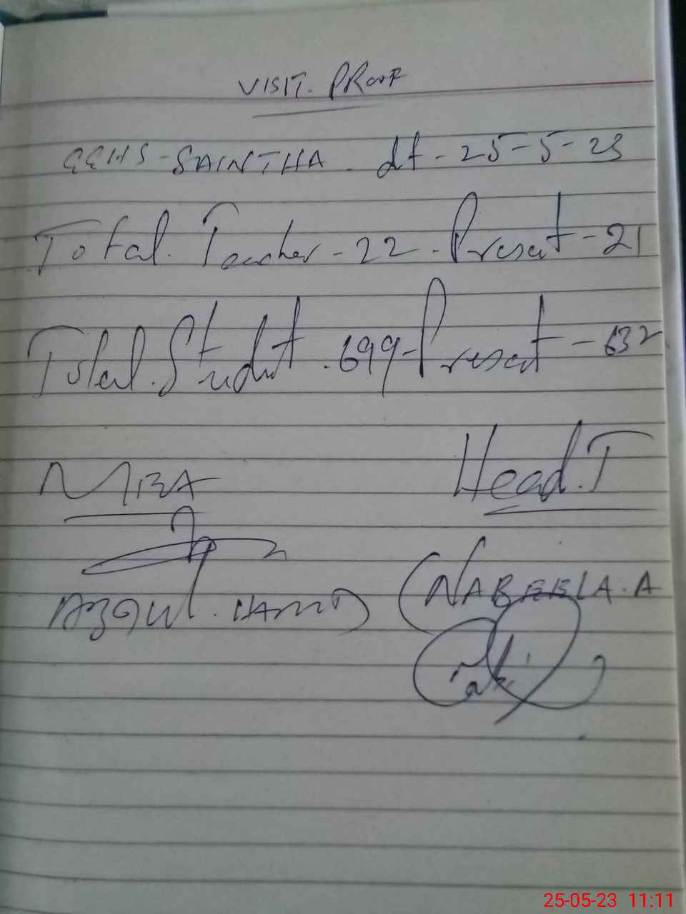 | Attendance Register | Head Teacher | MEA with School | Visit Proof |