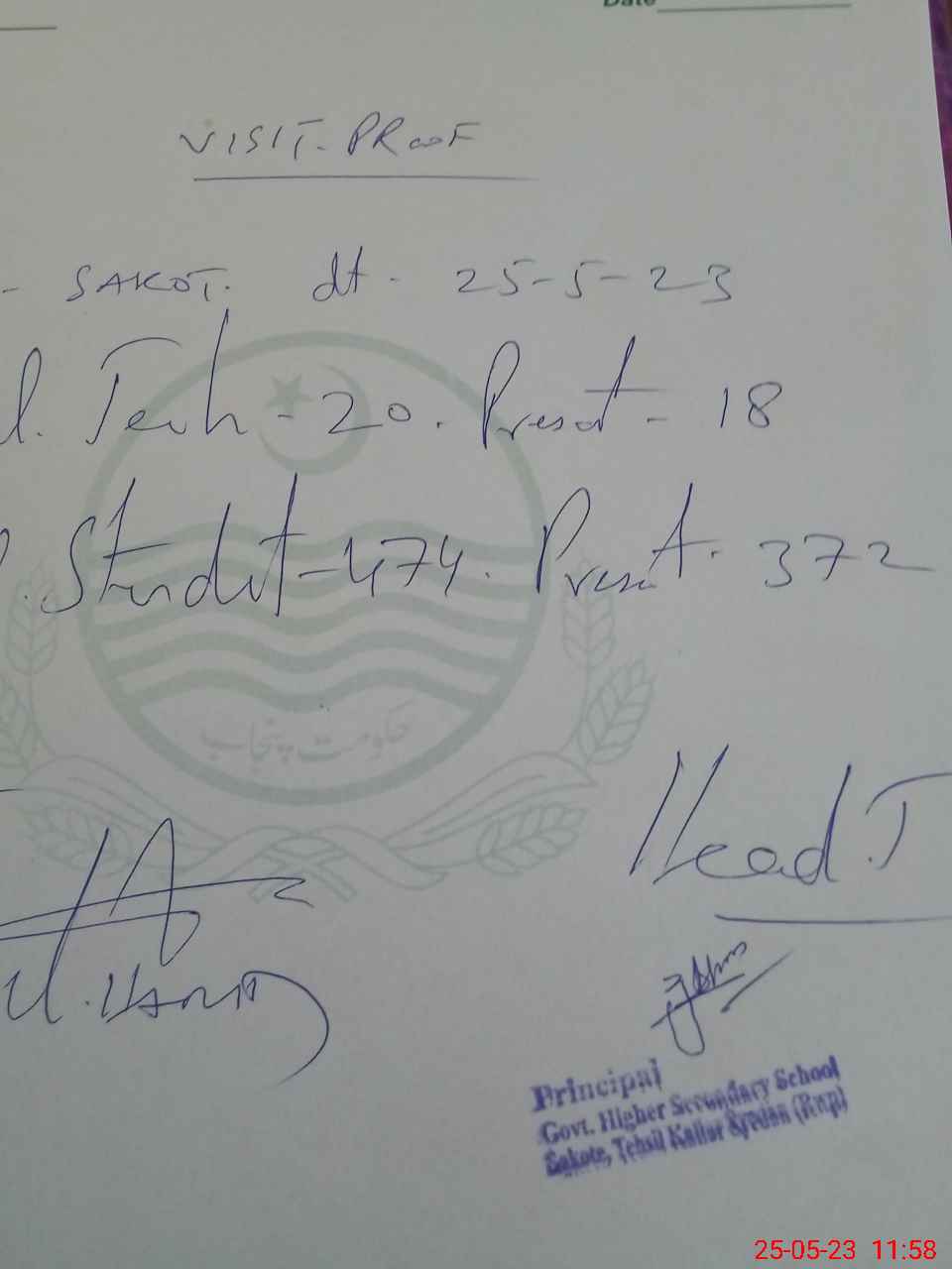 | Name: Za**** UlAb**** Ha**** Designation: (School Headmaster's/Headmistress's) I/C HEADMASTER Phone/Cell Number: 03**** |