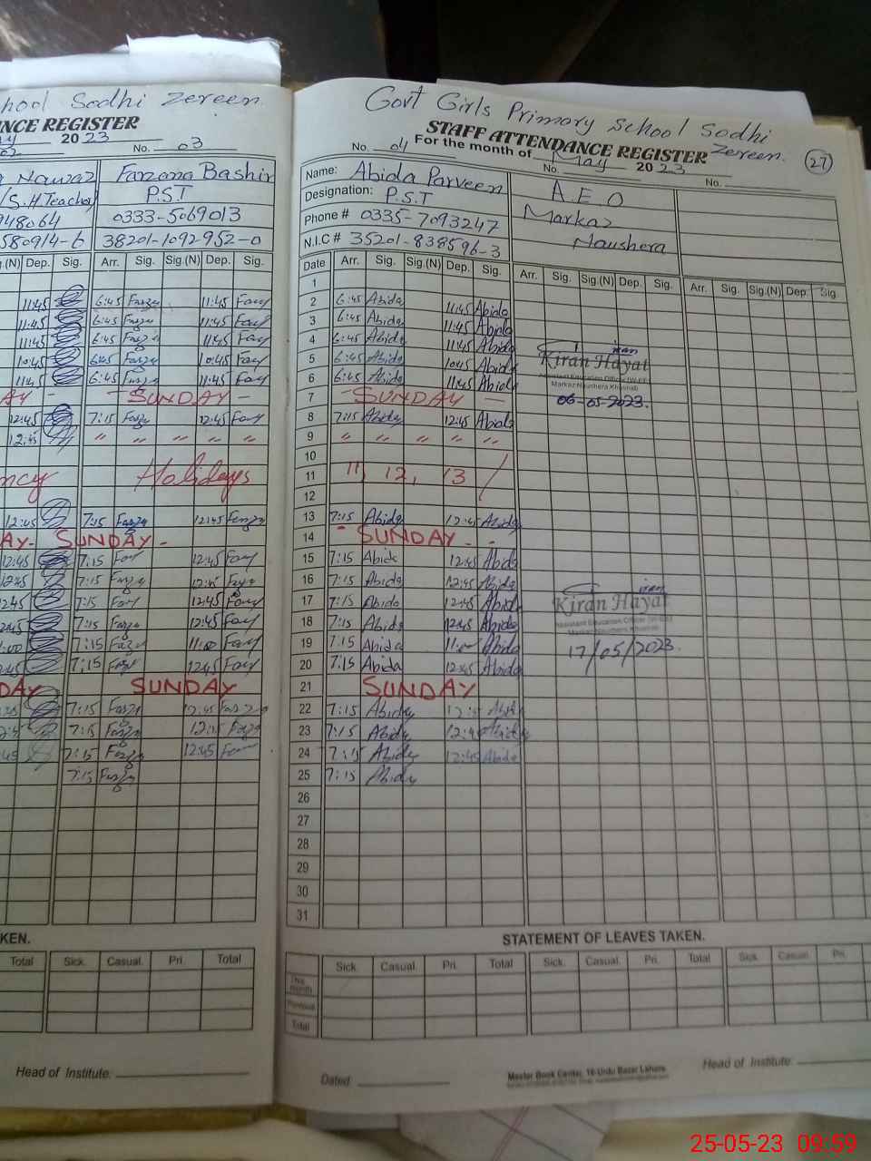 | District: KHUSHAB | Tehsil: NAUSHERA | Markaz: NOUSHERA (FEMALE) | Level: Primary | |