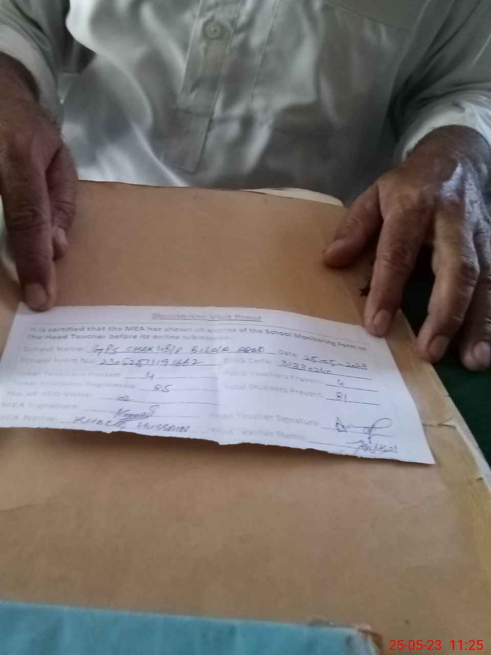 | Monitoring Date: 25-05-2023 | Start Time: 25-05-2023 10:45 AM | End Time: 25-05-2023 11:27 AM | Name of MEA: Kh**** Hu**** | |