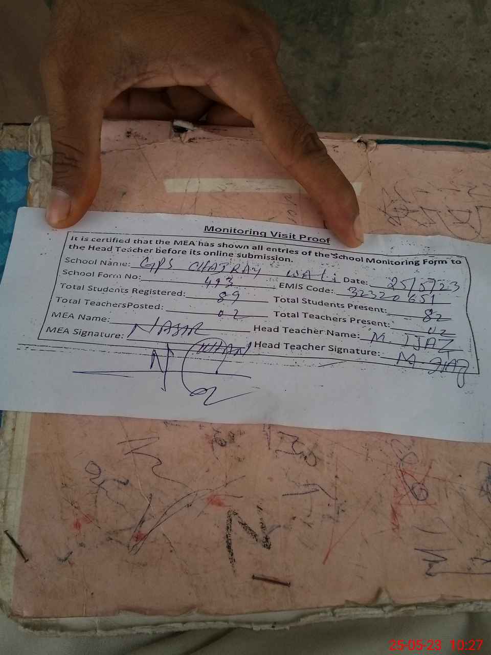 | Attendance Register | Head Teacher | MEA with School | Visit Proof |