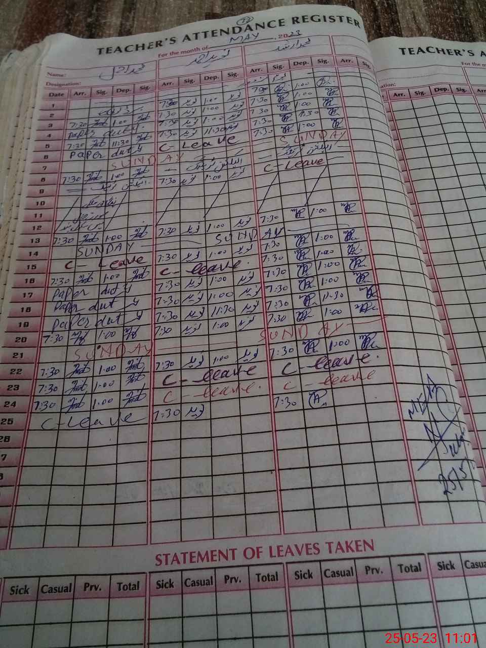 | Leave | Duty | Absent | Maternity | Medical | Ex- Pak |
