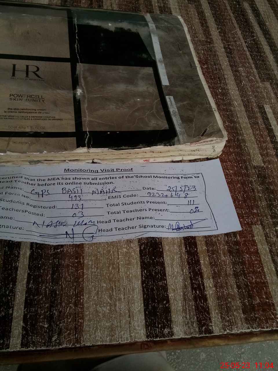| Attendance Register | Head Teacher | MEA with School | Visit Proof |