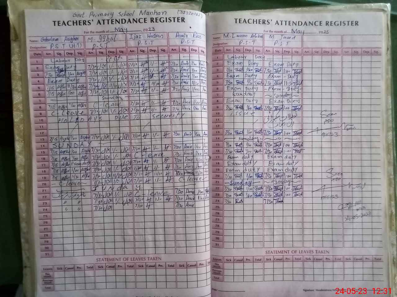 | Leave | Duty | Absent | Maternity | Medical | Ex- Pak |