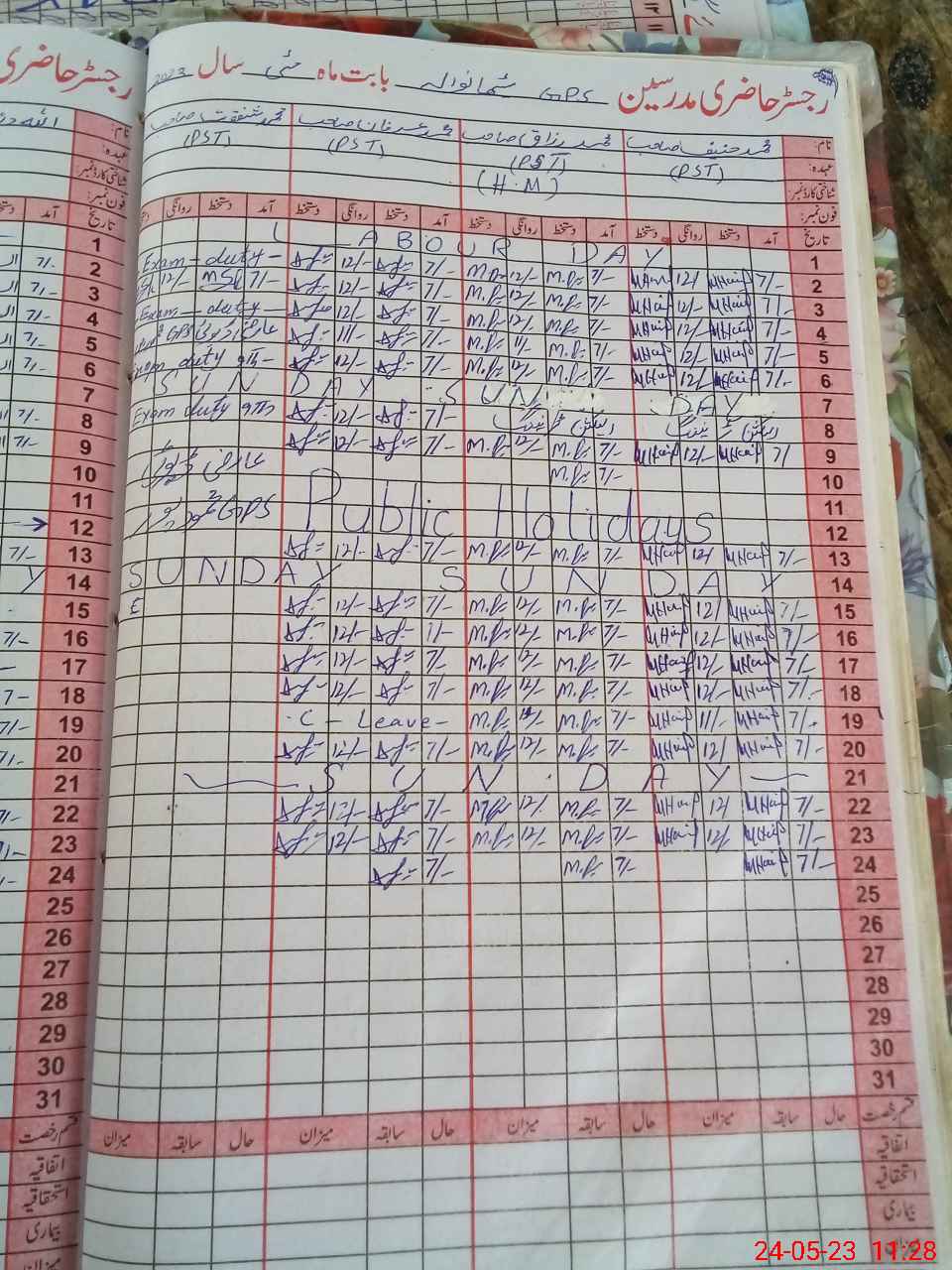 | Name: Mu**** Ra**** Designation: (School Headmaster's/Headmistress's) PST Phone/Cell Number: 03**** |