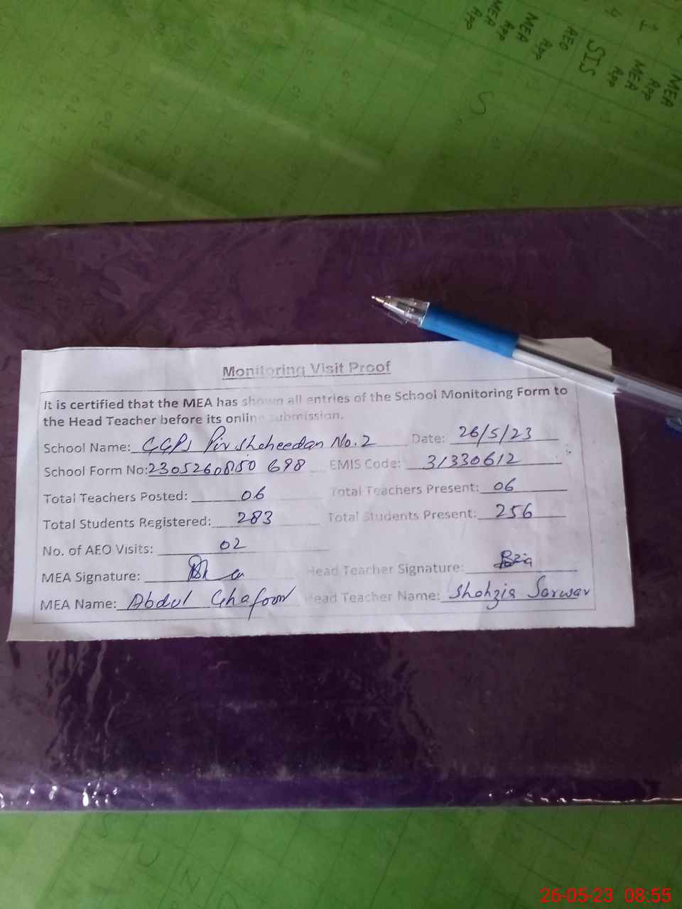| EMIS Code: 31330612 | Name of School: GGPS PIR SHAHIDAN NO.2 | |||