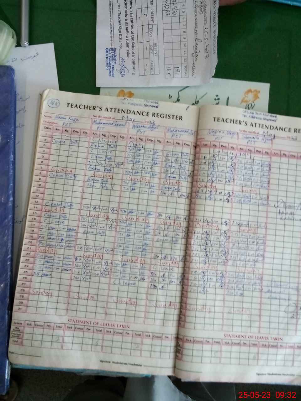 | Attendance Register | Head Teacher | MEA with School | Visit Proof |