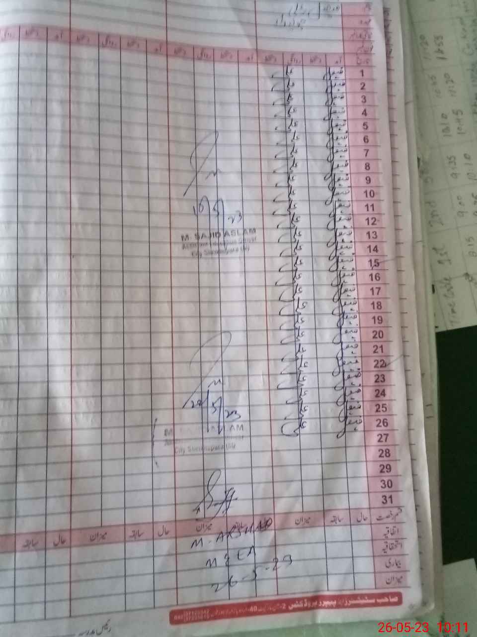 | CNIC | Full Name | Designation | R/C | Absence During Last Calender Month |