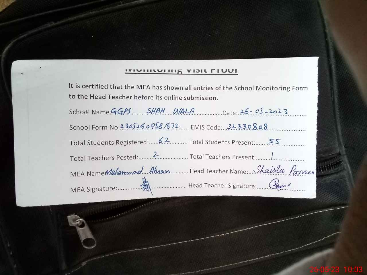 | EMIS Code: 32330808 | Name of School: GGPS SHAH WALA | |||