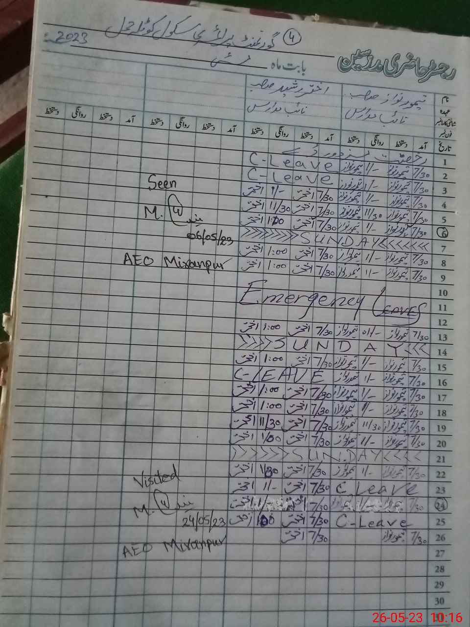 | Attendance Register | Head Teacher | MEA with School | Visit Proof |