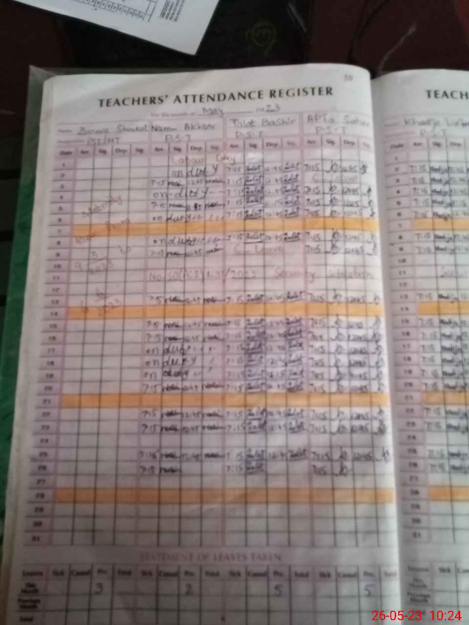 | Leave | Duty | Absent | Maternity | Medical | Ex- Pak |