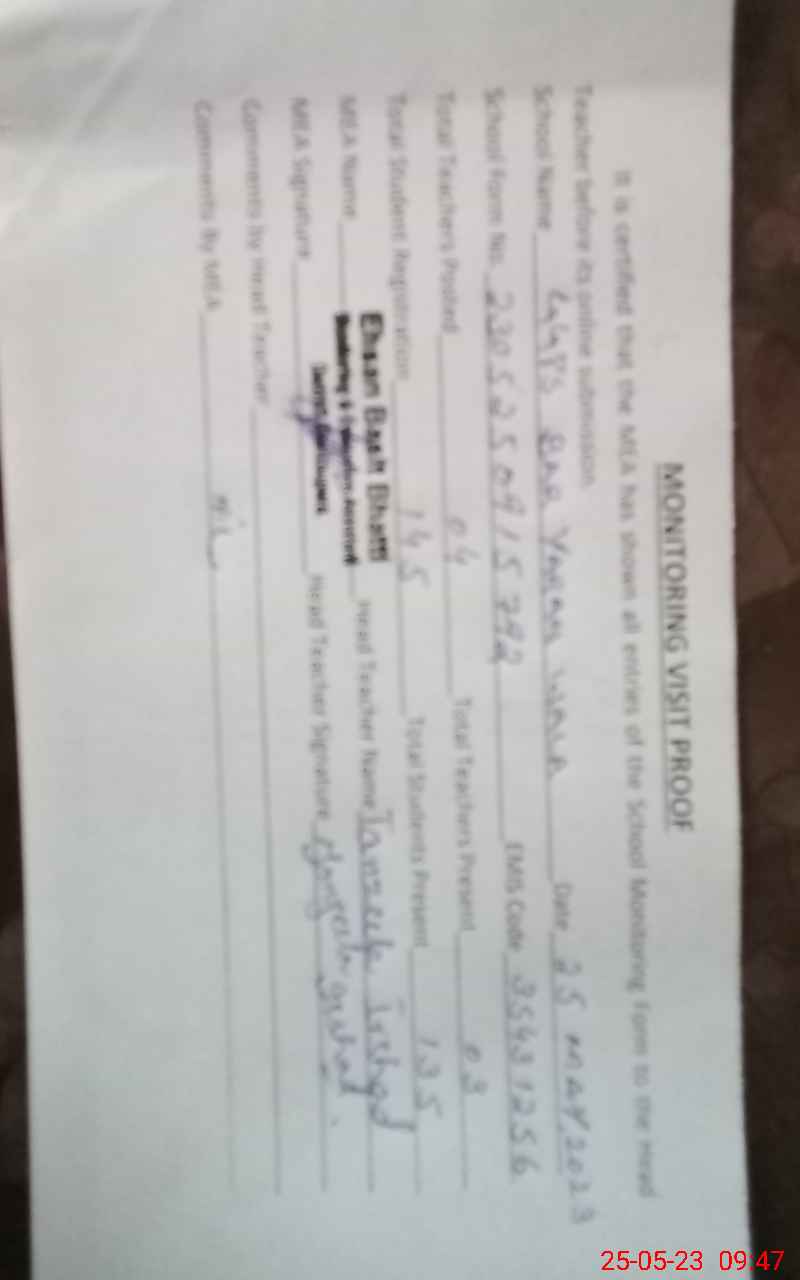 | Certified that this School was Inspected by the Undersigned MEA/DMO Today and the Information Stated Above is as Per Record. | |||||