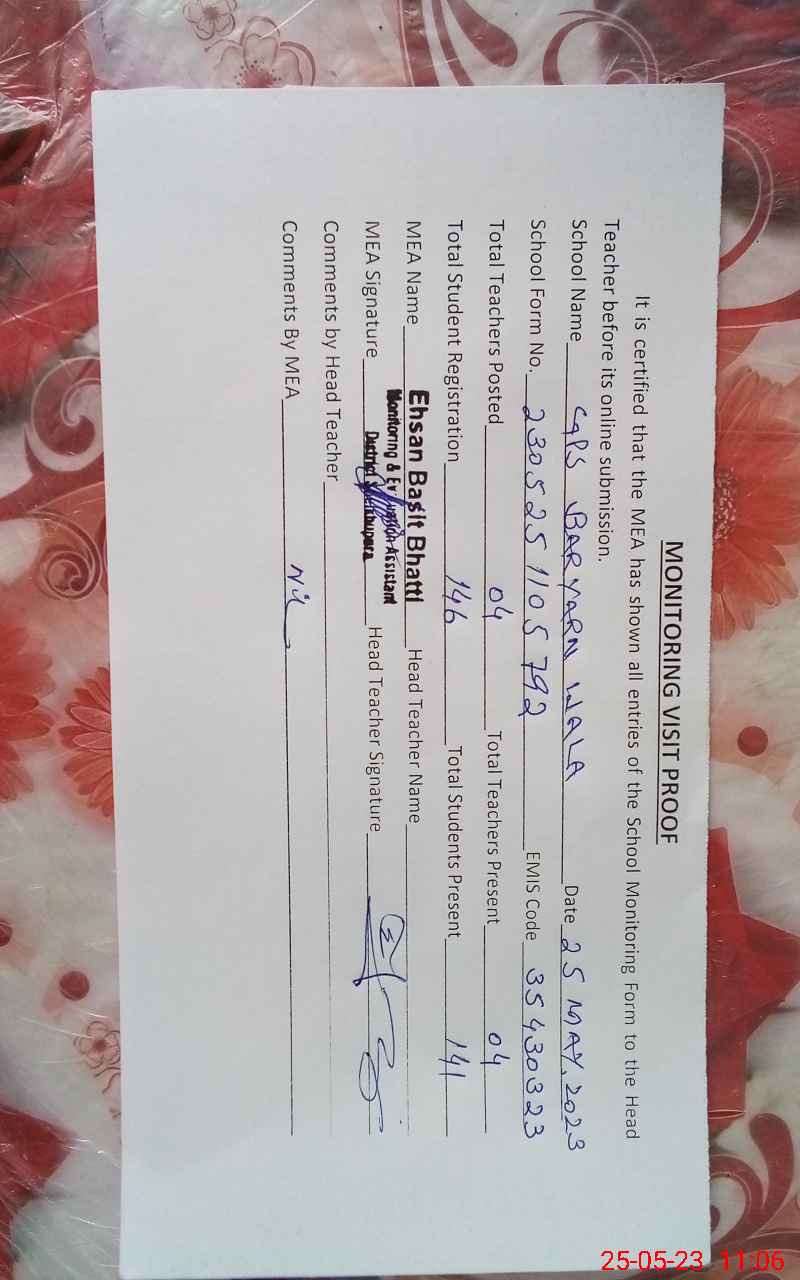 | EMIS Code: 35430323 | Name of School: GPS BARYARN -WALA | |||