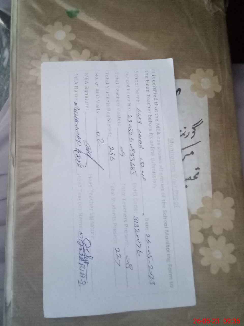 | Certified that this School was Inspected by the Undersigned MEA/DMO Today and the Information Stated Above is as Per Record. | |||||