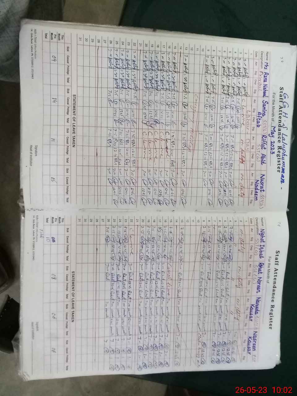 | Monitoring Date: 26-05-2023 | Start Time: 26-05-2023 08:20 AM | End Time: 26-05-2023 10:22 AM | Name of MEA: Mu**** Ha**** | |
