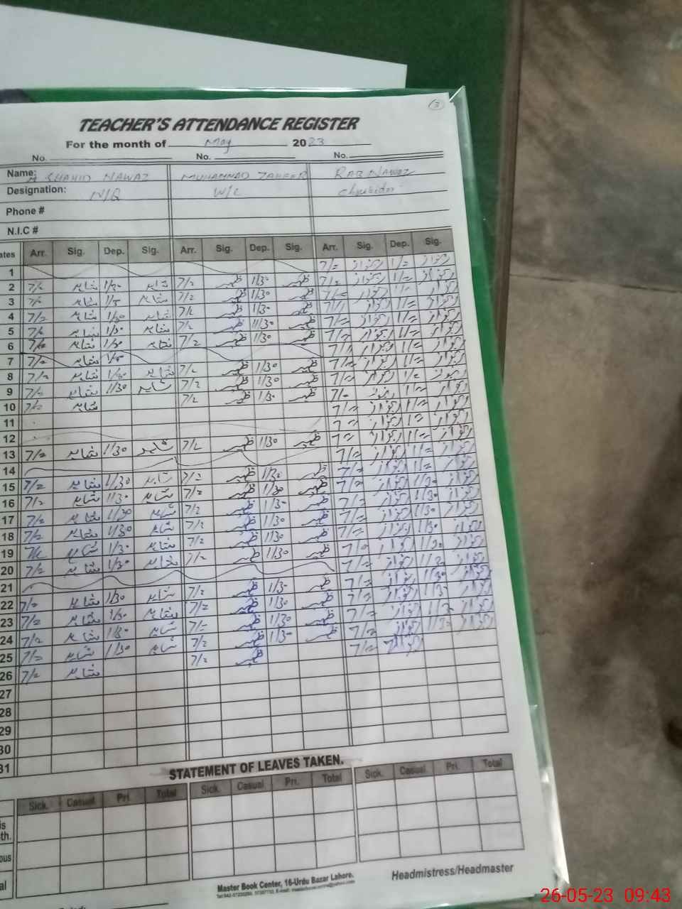 | Name: WA**** AH**** Designation: (School Headmaster's/Headmistress's) S.S.T.(SCIENCE) Phone/Cell Number: 03**** |