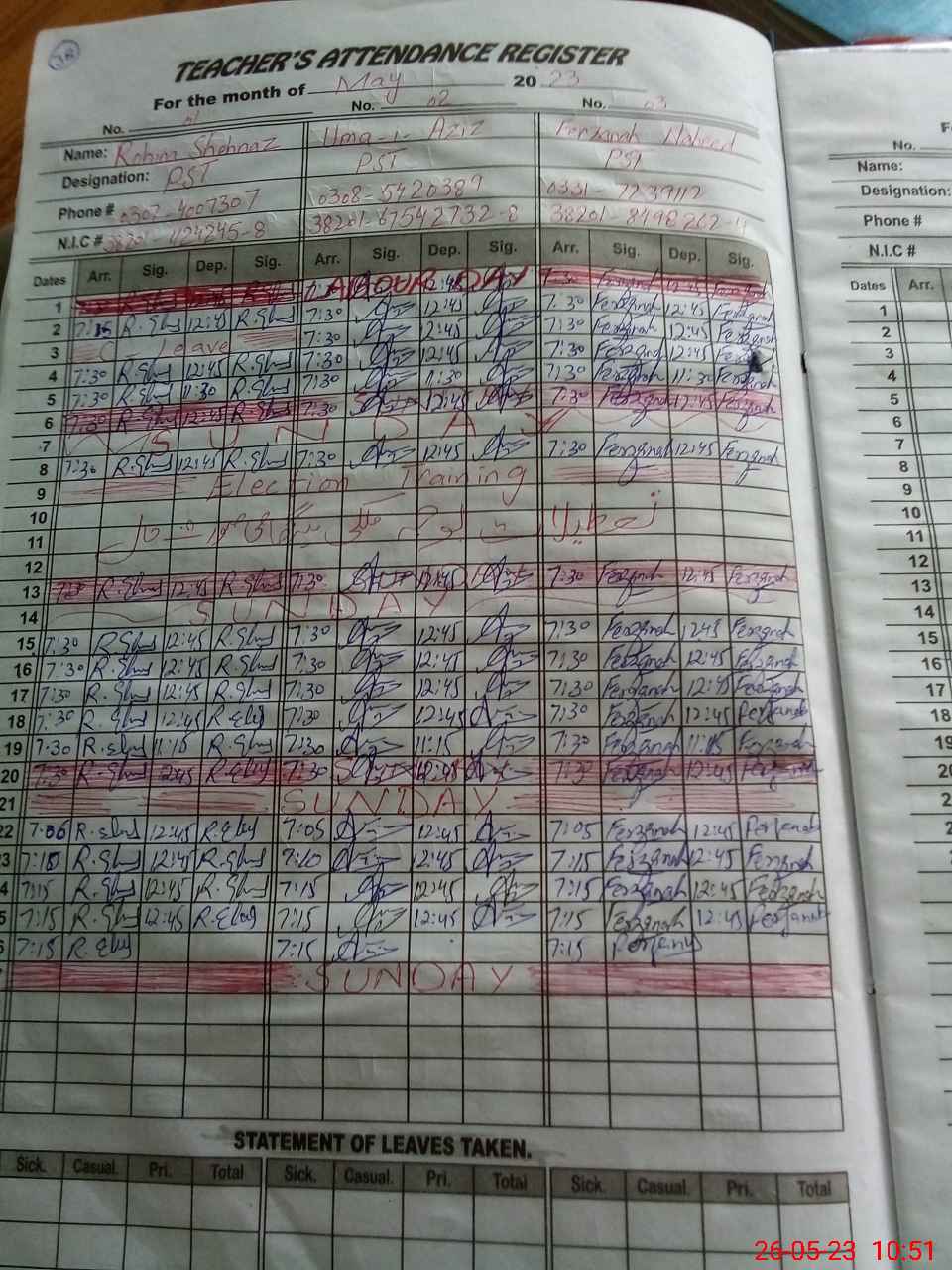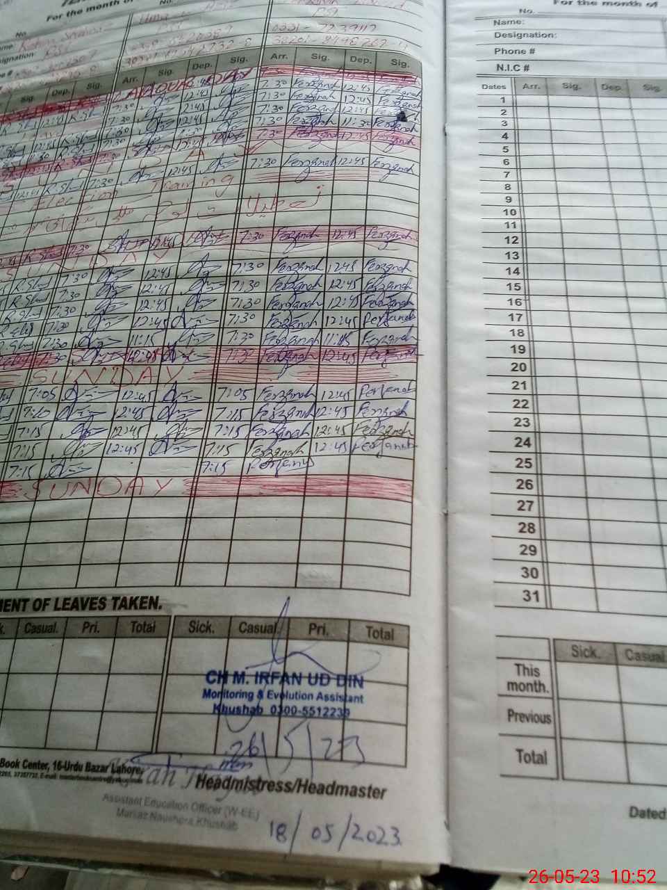 | Name: Um**** Az**** Designation: (School Headmaster's/Headmistress's) PST Phone/Cell Number: 03**** |