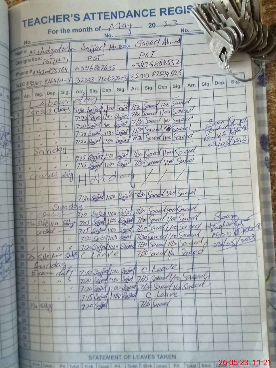 | Name: MSh**** Kh**** Designation: (School Headmaster's/Headmistress's) PST Phone/Cell Number: 03**** |