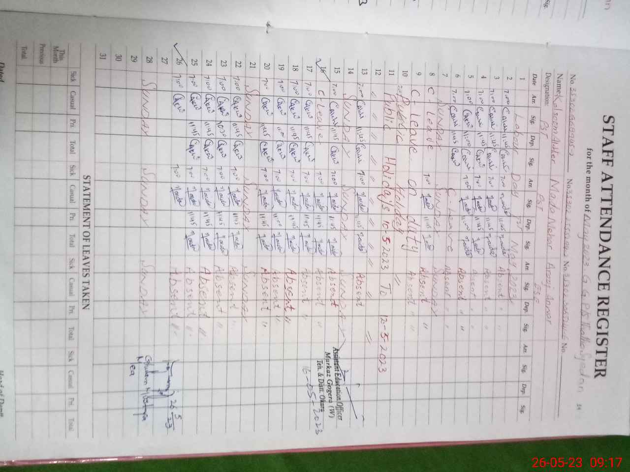 | Name: Ka**** Ak**** Designation: (School Headmaster's/Headmistress's) PST Phone/Cell Number: 03**** |