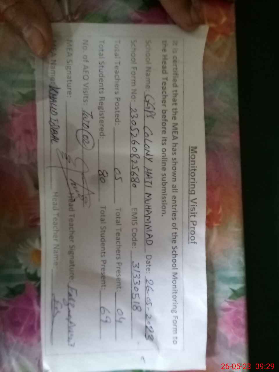 | EMIS Code: 31330518 | Name of School: GGPS HAJI COLONY | |||