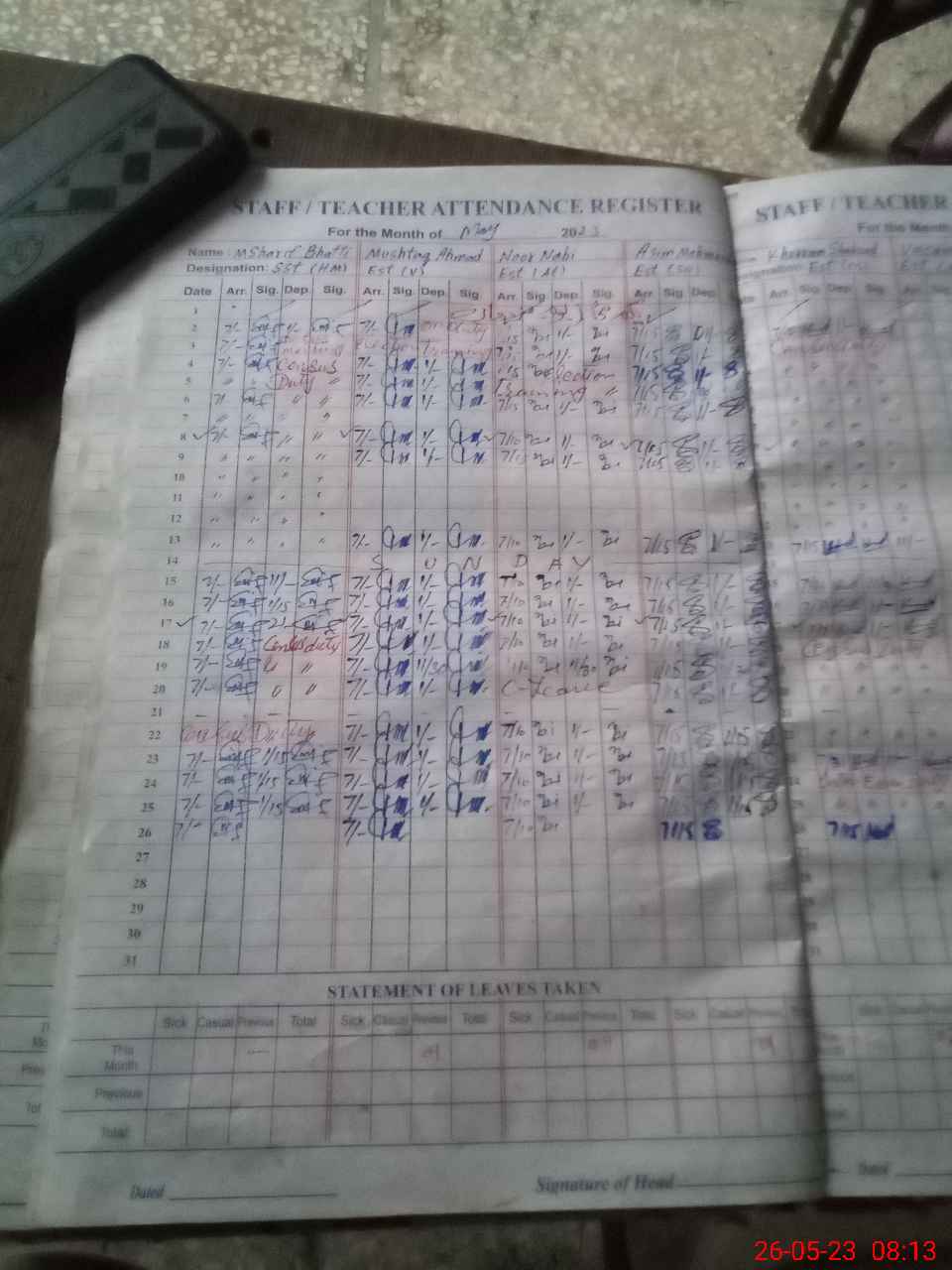 | 36**** | Mu**** Ab**** Sa**** | PST | Regular | 0 | 17 | 0 | 0 | 0 | 0 | 0 | 0 | 0 | Exam Duty |