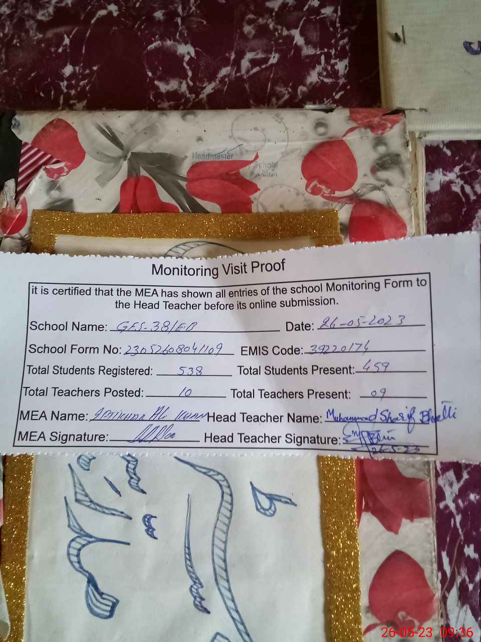 | Attendance Register | Head Teacher | MEA with School | Visit Proof |