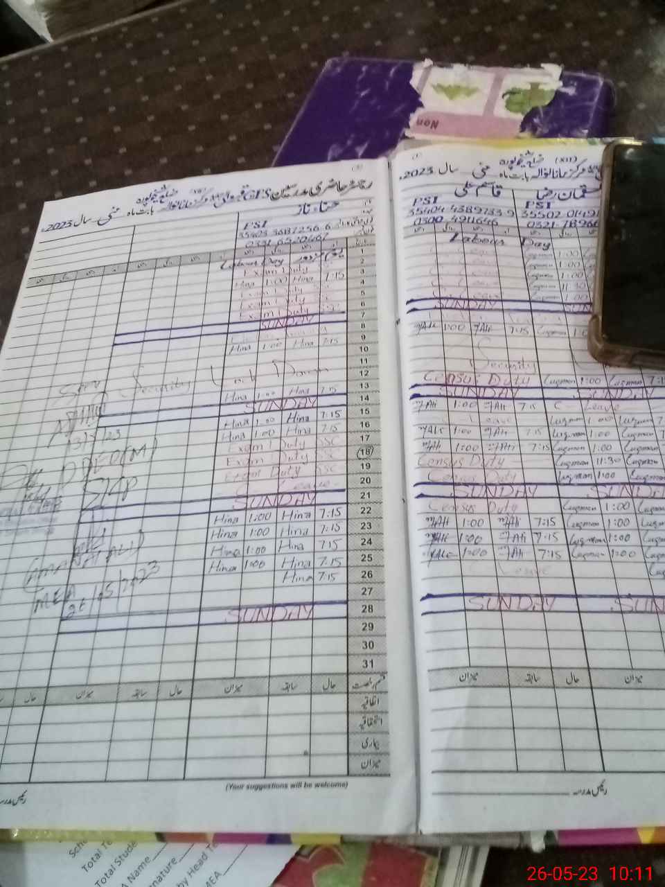| CNIC | Full Name | Designation | R/C | Absence During Last Calender Month |