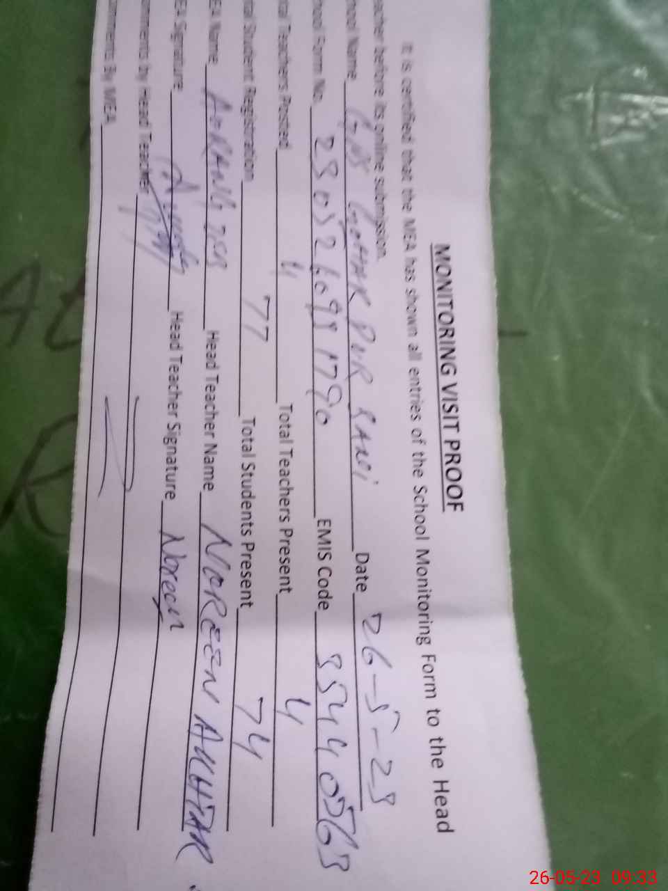 | EMIS Code: 35440563 | Name of School: GGPS GOHAR PUR SANI | |||