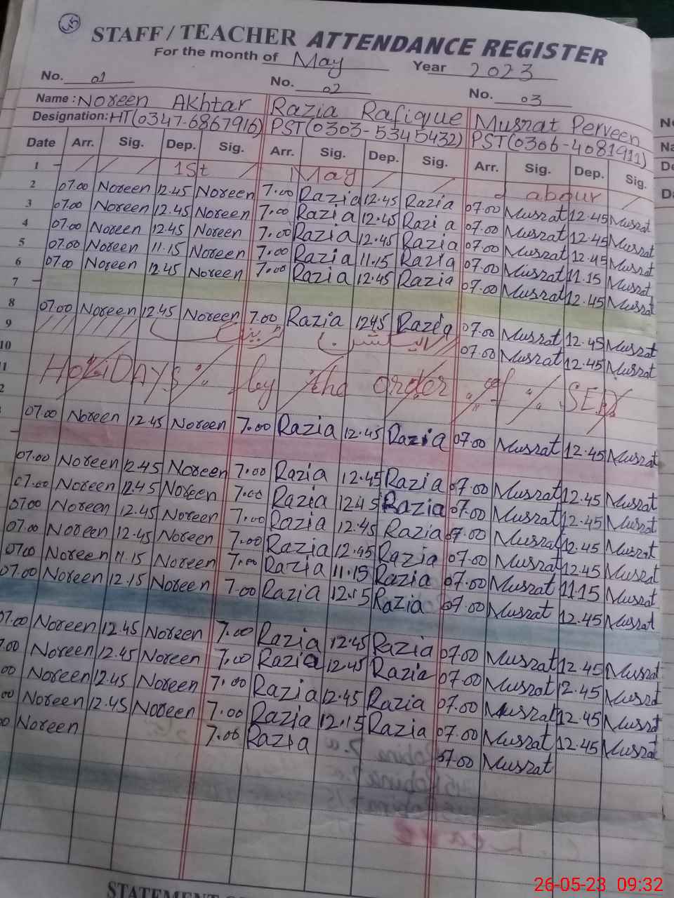 | Monitoring Date: 26-05-2023 | Start Time: 26-05-2023 08:45 AM | End Time: 26-05-2023 09:37 AM | Name of MEA: Au**** Za**** | |