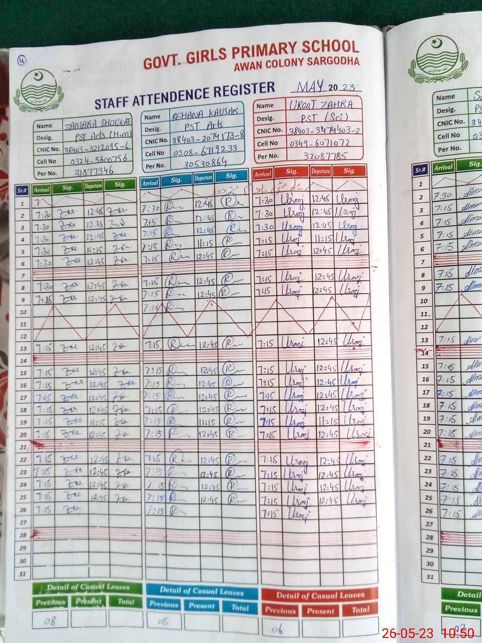 | CNIC | Full Name | Designation | R/C | Absence During Last Calender Month |